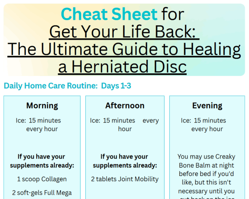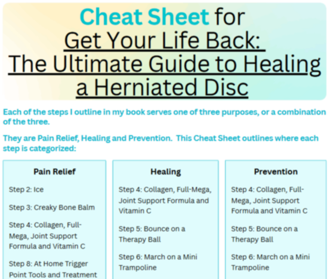 This cheat sheet outlines which steps are intended to help with pain relief, healing, or prevention.